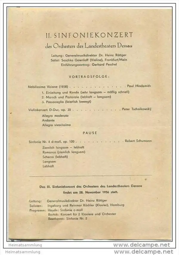 Landestheater Dessau - Spielzeit 1956/57 Nummer 12 - Programmheft II. Sinfoniekonzert - Solisten Ingeborg und Reinmar Küchler Hamburg - Gebrauchsspuren - Heftklammer rostig (EP5306)
