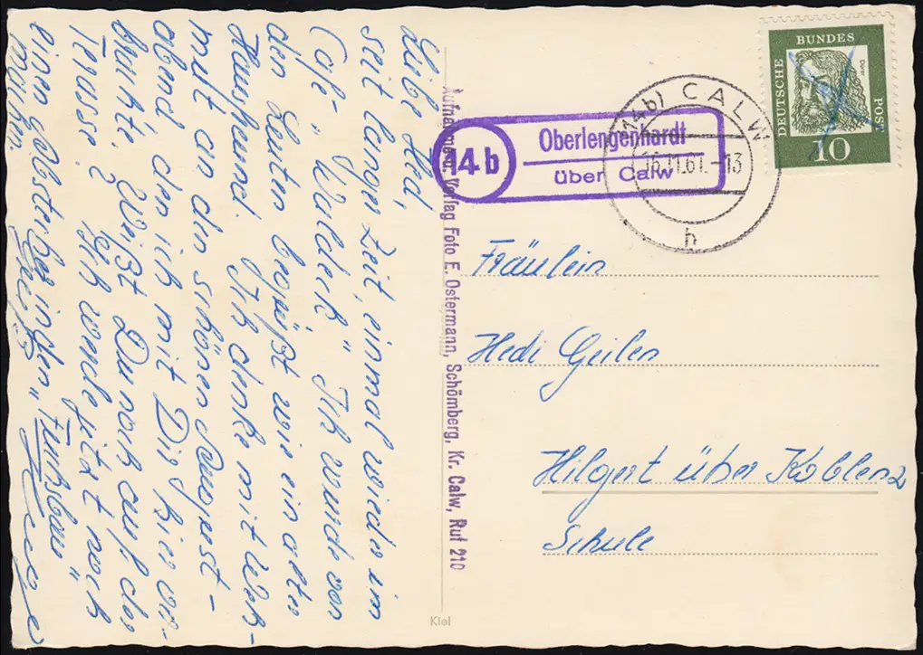 Landpost 14b Oberlengenhardt über CALW 16.11.1961 auf AK Haus Waldeck