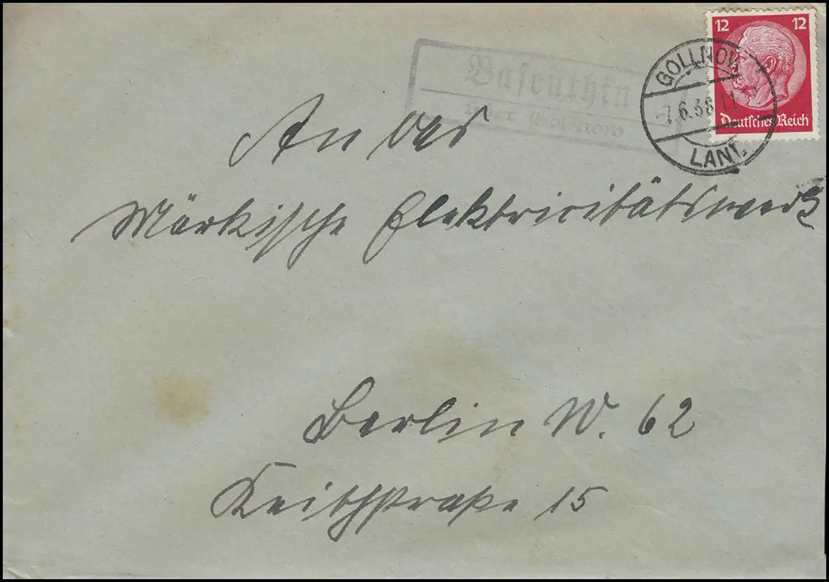 Landpost BASENTHIN über GOLLNOW/ Goleniów (Land) 7.6.1938 nach BERLIN