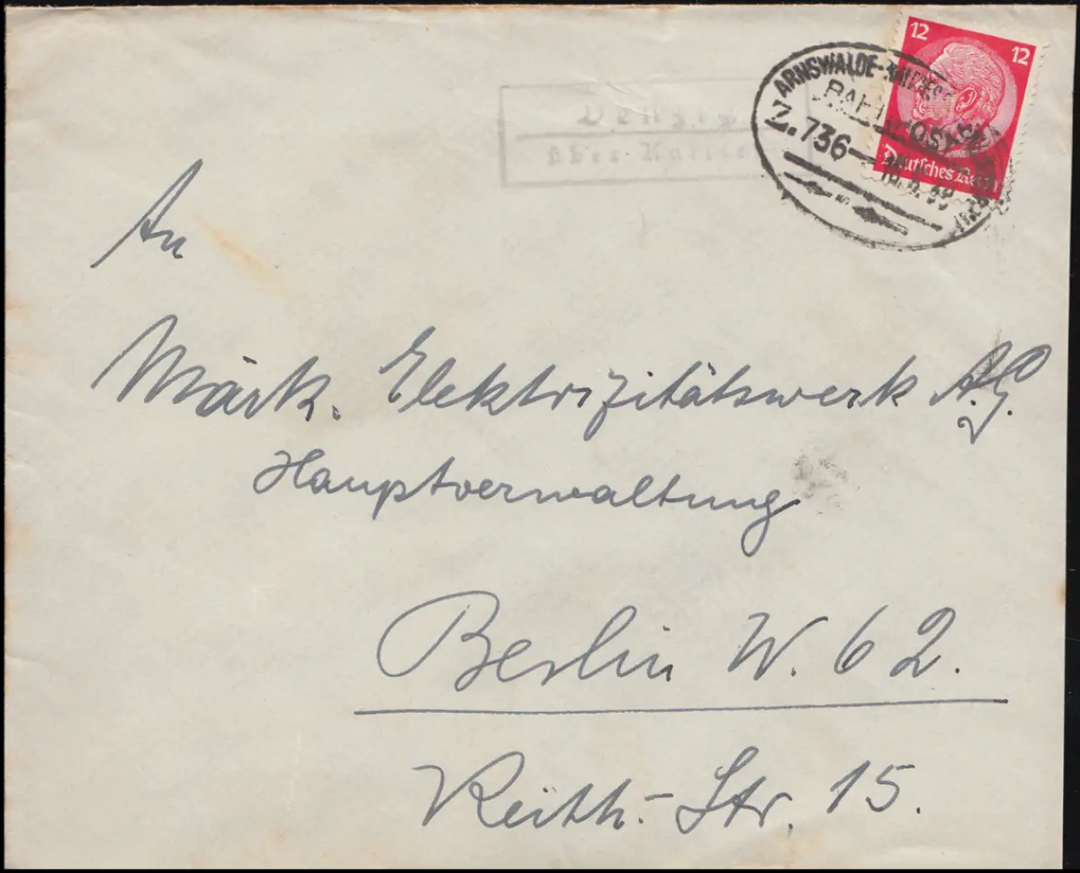 Landpost Denzig über Kallies, Bahnpost Arnswalde 16.5.1939