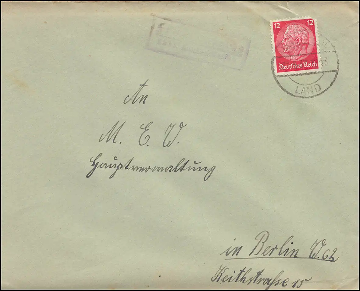 Landpost Frankenfelde über Luckenwalde auf Brief LUCKENWALDE LAND 21.6.37