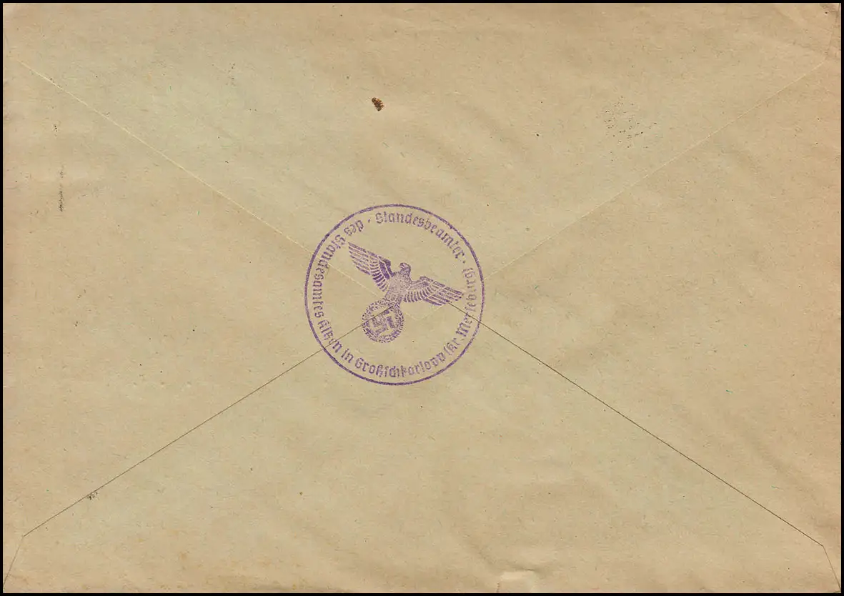 Landpost Großschkorlopp über GROSSKORBETHA 1939 Brief Standesbeamter nach Berlin