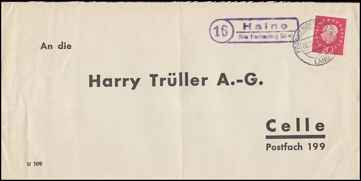 Landpost Halne über Frankenberg/Eder Bedarfserhaltung/senkrechter Briefbug