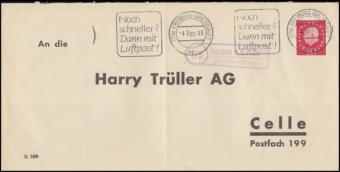 Landpost Hausen an der Möhlin über Freiburg Bedarfserhaltung/senkr. Briefbug