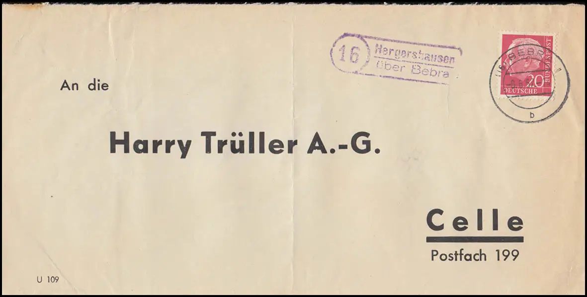 Landpost Hergershausen über Bebra Bedarfserhaltung/senkrechter Briefbug