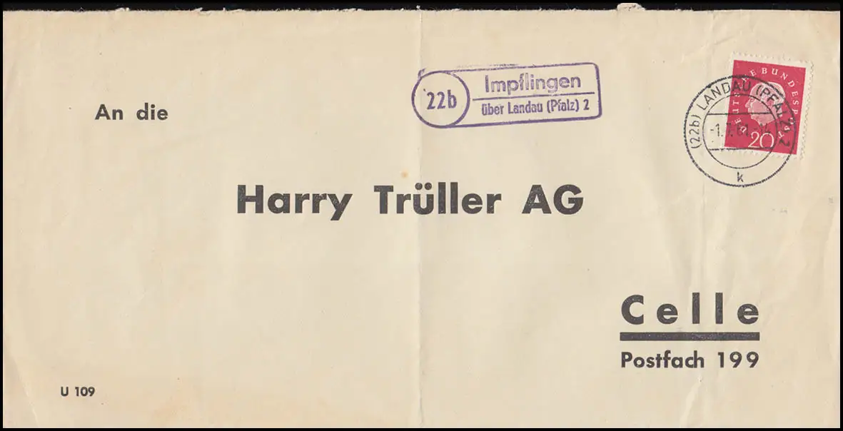 Landpost Impflingen über Landau 2 Bedarfserhaltung/senkrechter Briefbug