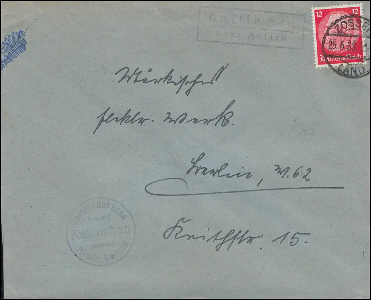 Landpost Kallinchen über Zossen, Brief ZOSSEN LAND 25.5.35