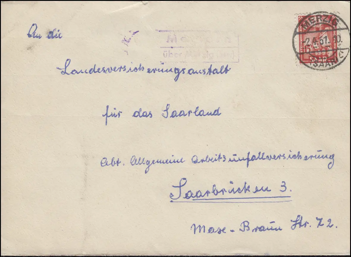 Landpost Mechern über MERZIG auf Fernbrief mit EF 281 Steinkohlenindustrie