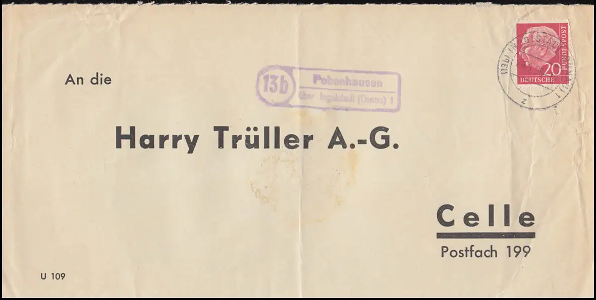 Landpost Pobenhausen über Ingolstadt 1 Bedarfserhaltung/senkrechter Briefbug
