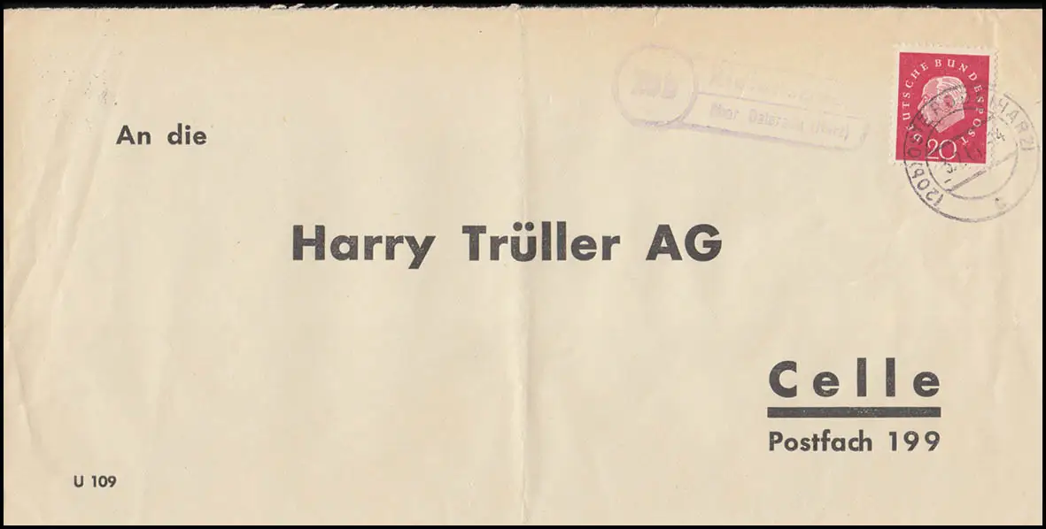 Landpost Riefensbeek über Osterode / Harz Bedarfserhaltung/senkrechter Briefbug