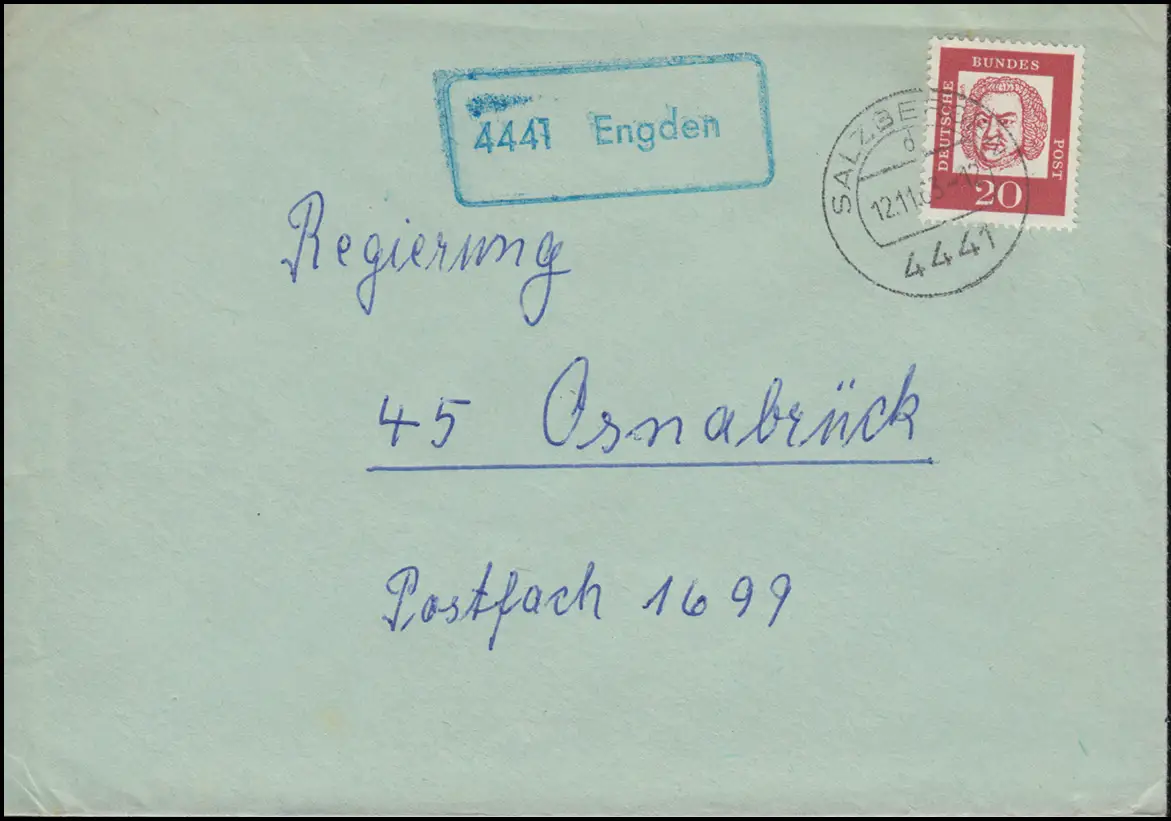 Landpost-Stempel 4441 Engden auf Brief SALZBERGEN 12.11.1963
