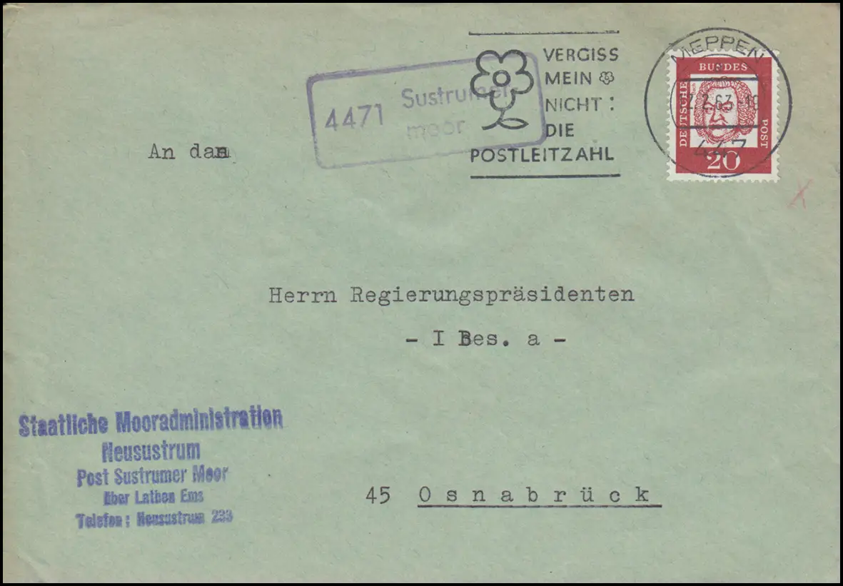 Landpost-Stempel 4471 Sustrumermoor auf Brief MEPPEN 12.2.1963
