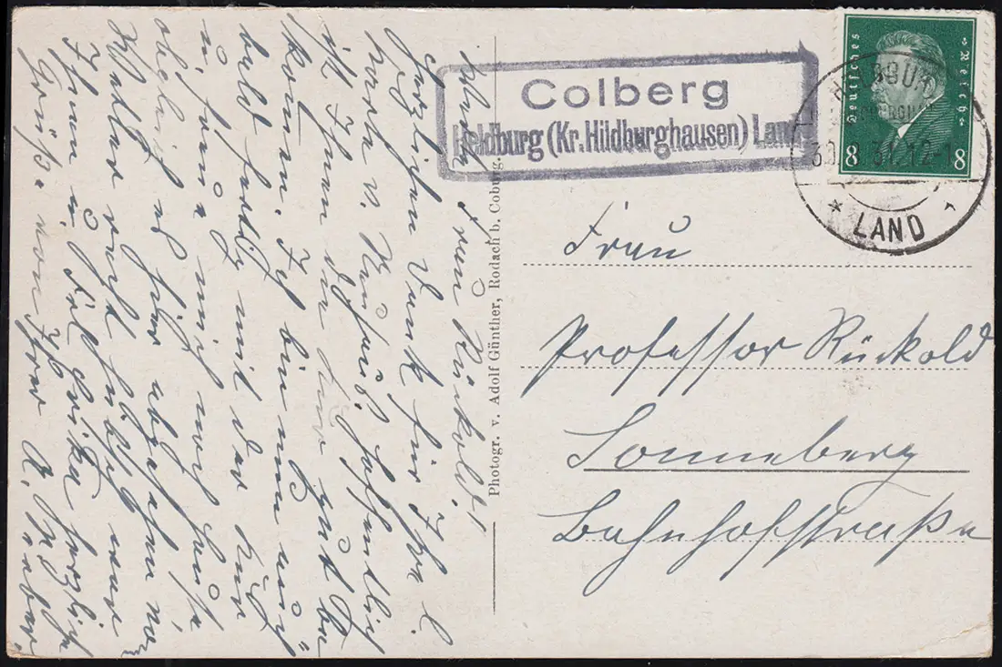 Landpost-Stempel Colberg HELDBURG (Kr. HILBURGHAUSEN) LAND 30.8.1931 auf AK