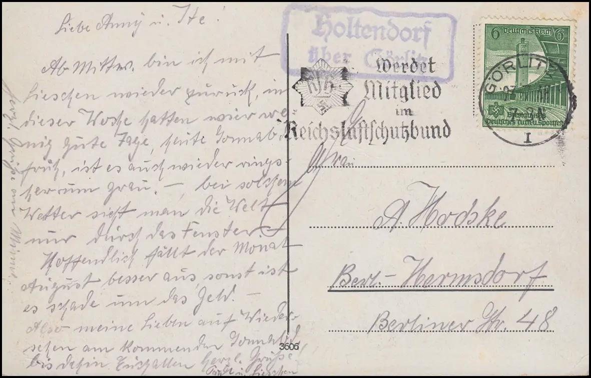 Landpost-Stempel Holtendorf über GÖRLITZ 27.7.1938 auf AK Görlitz