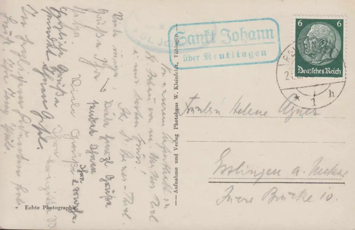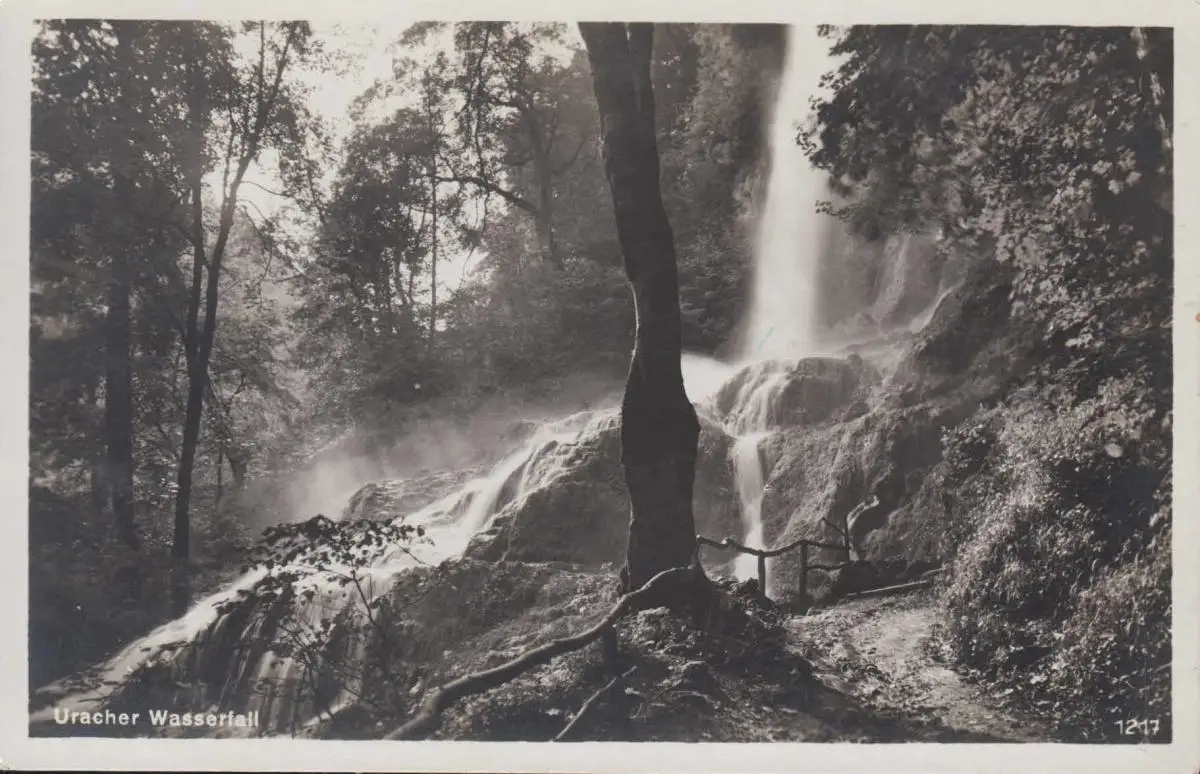 Landpost-Stempel Sankt Johann über REUTLINGEN 21.8.36 auf AK Uracher Wasserfall