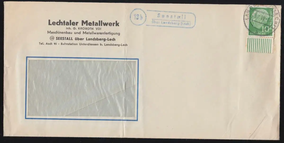 Landpost-Stempel Seestall über LANDSBERG (LECH) 21.7.1958 auf Fensterbrief