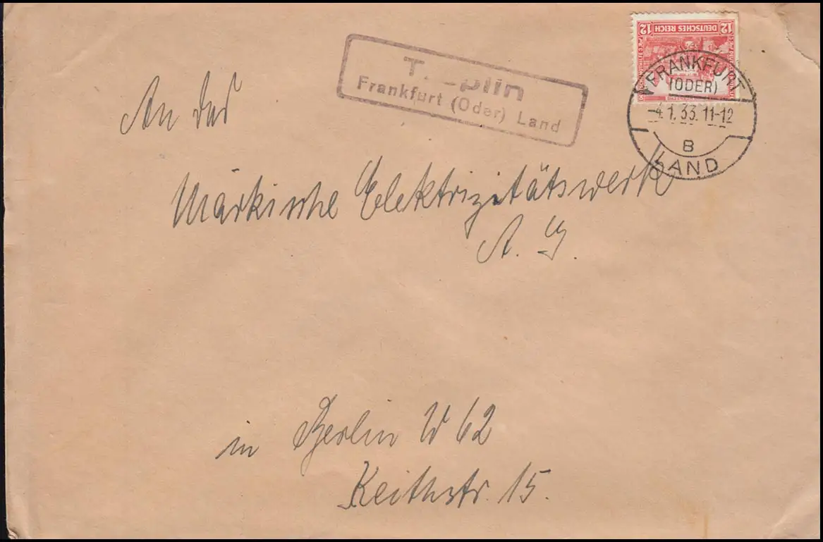 Landpost Treplin über FRANKFURT (ODER) LAND B - 4.1.1933 auf Brief nach Berlin