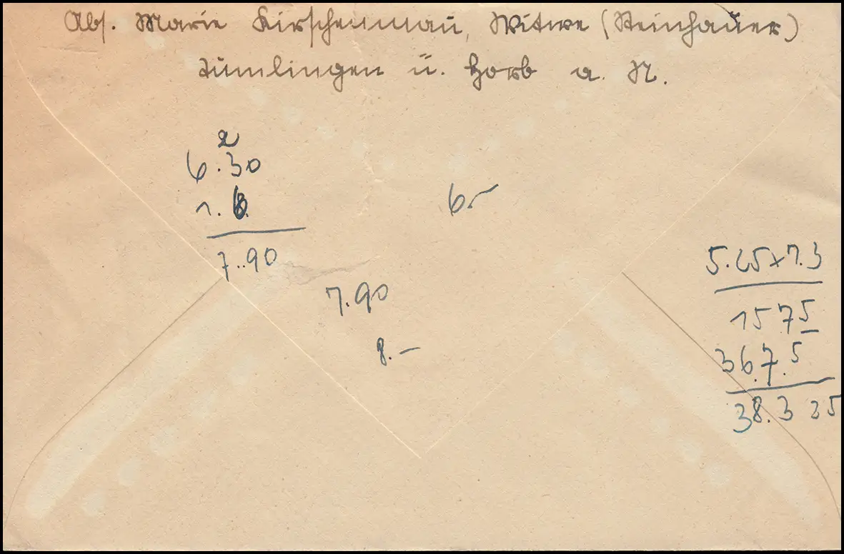 Landpost Tumlingen über HORB (NECKAR) 21.7.1949 auf Brief mit Notopfermarke 2