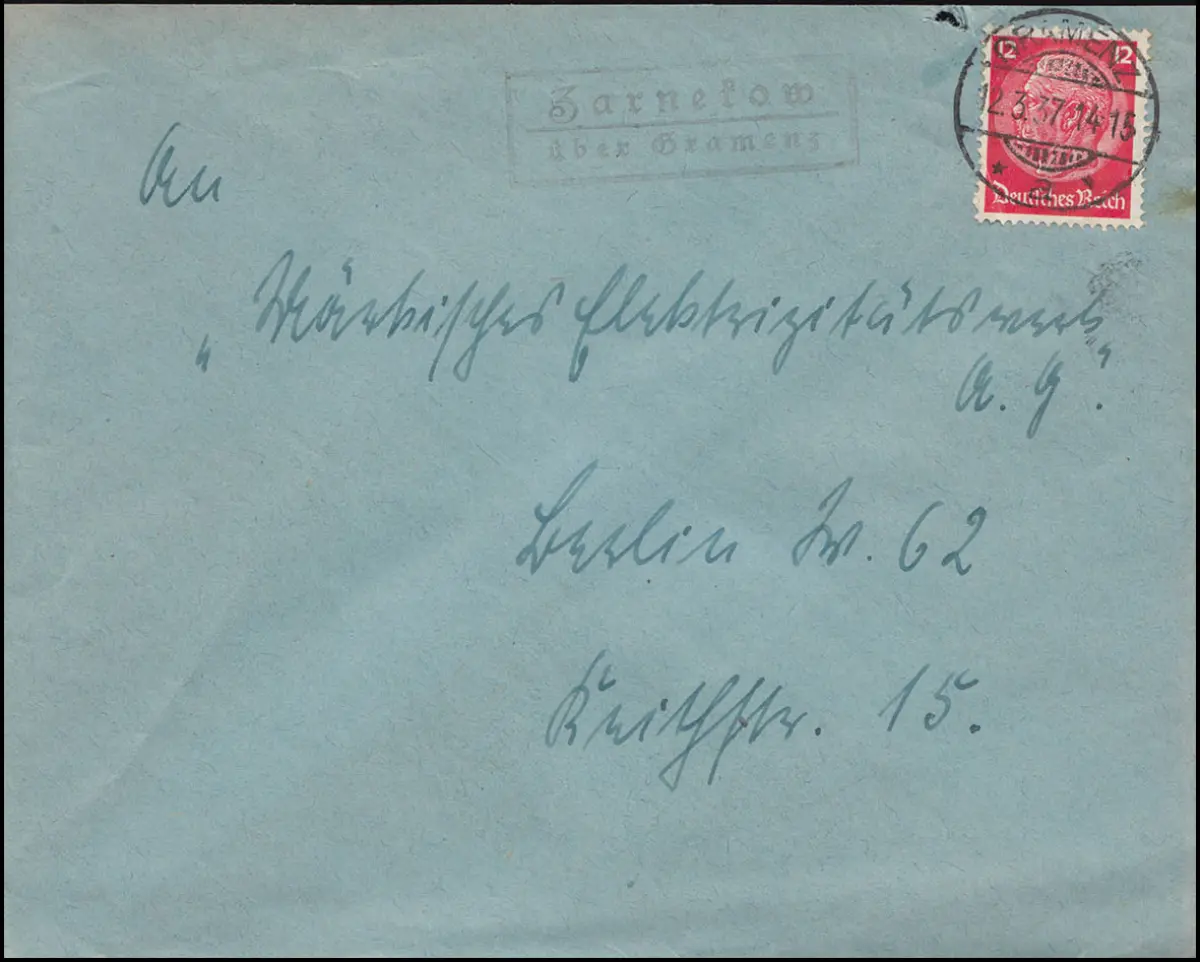 Landpost Zarnekow über Gramenz 12.3.1937