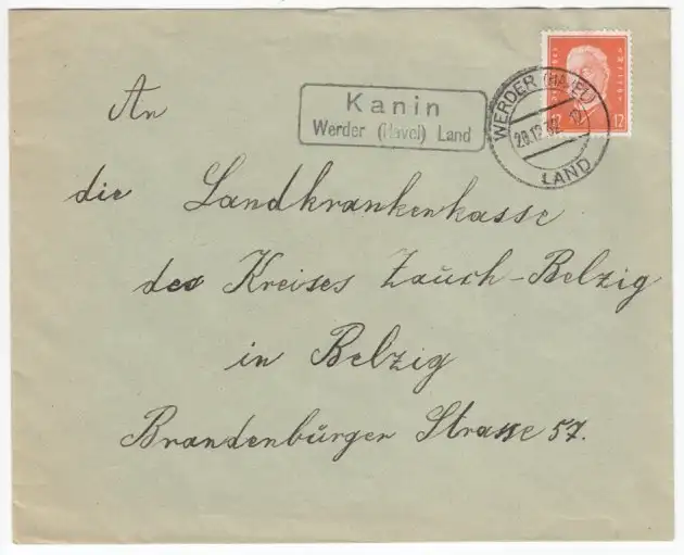 Beleg, Brief, Michel 466 EFLandpoststempel, Kanin Werder (Havel) LandWerder (Havel) Land, 20.12.32Stempeldaten: Werder (Havel) Land, 20.12.32 Anmerkungen: keine