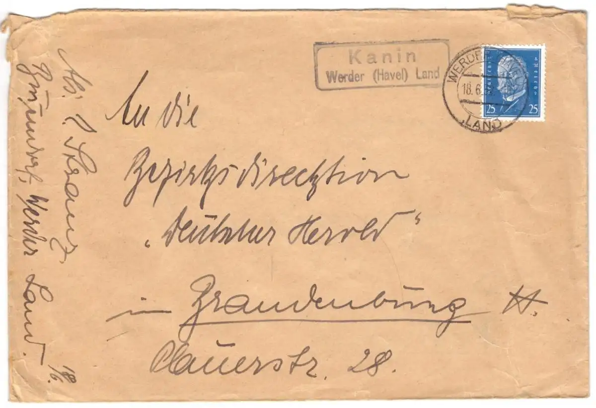 Beleg, Brief, Michel DR 416 EFLandpoststempel, Poststelle II, Kanin Werder Havel LandStempeldaten: Werder (Havel) Land, 18.6.32 Nebenstempel: keine