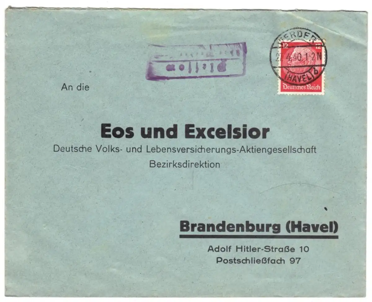 Beleg, Brief, Michel DR 519 EFLandpoststempel, Poststelle II, Plessow über Werder (Havel)Stempeldaten: Werder (Havel), 27.4.40 Nebenstempel: keine