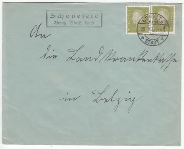 Beleg, Brief, Michel 466 EFLandpoststempel, Schönefeld Beelitz (Mark) LandStempeldaten: Beelitz (Mark) Stadt, 28.8.33 Anmerkungen: keine