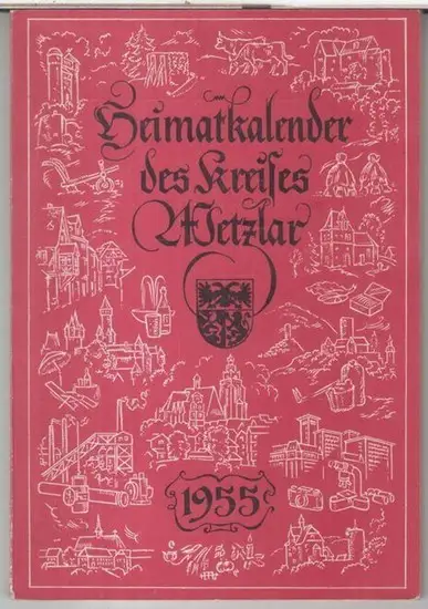 Titel: Heimatkalender des Kreises wetzlar 1955. - Aus dem Inhalt: Max Teike - Der Kreis Wetzlar, eine geologische Beschreibung / H. Schoppa: Germanische und römische Funde / Herwig: Wälder im Kreise Wetzlar - Ihre Bedeutung für die Landschaft / Heinz Neuweger: Tieraufnahmen mit der LEICA