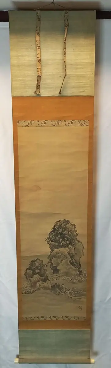 Bemerkungen: Japanese silk hanging scroll depicting a sea landscape with a sunset. With unknown signature seal.