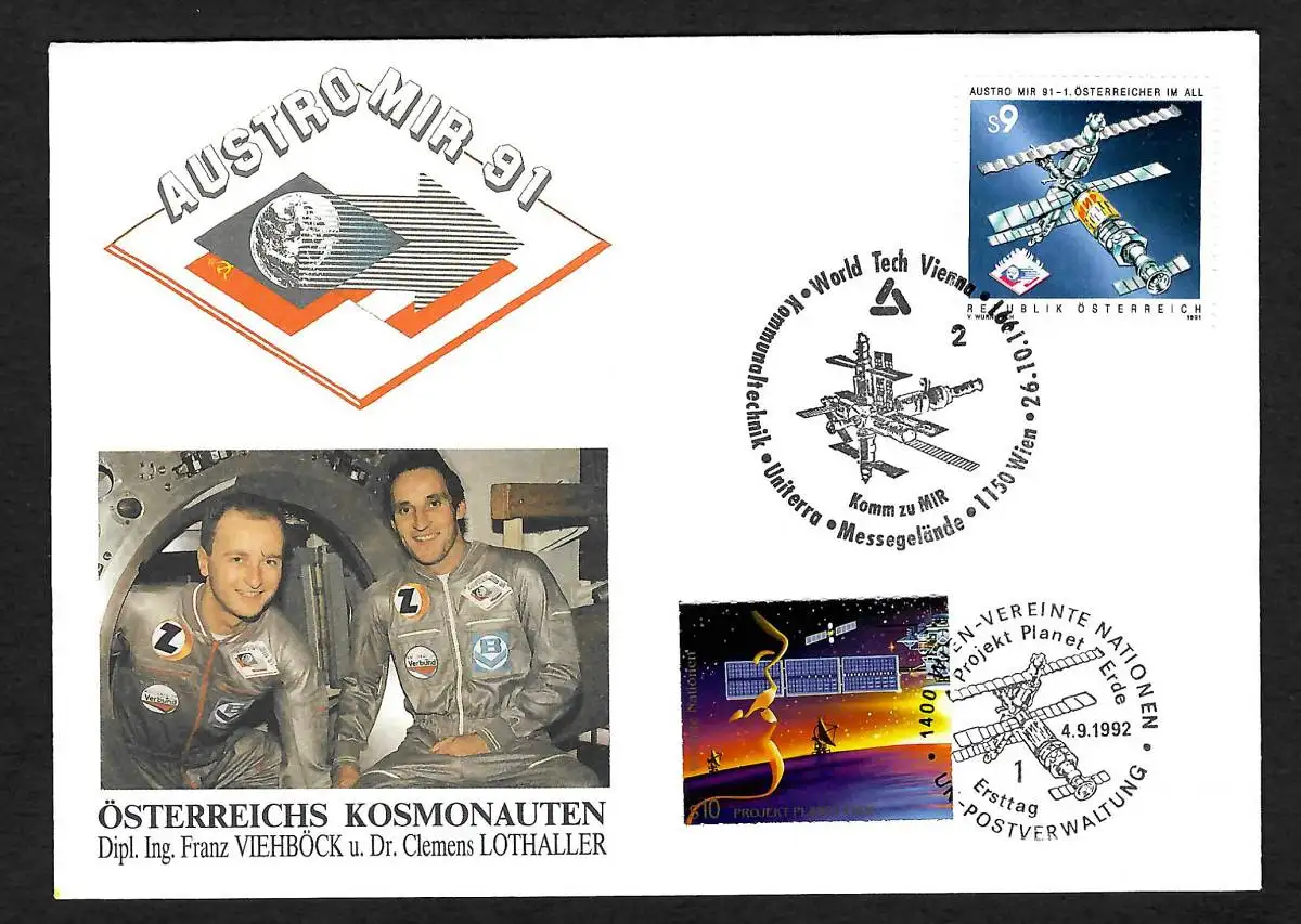 Landung: Austromier, MIR, 1992 FDC, 1. Österreicher im All Viehböck, Lothaller