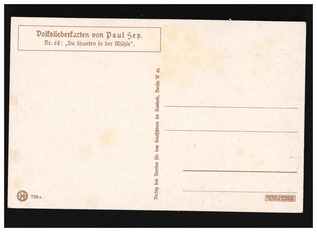 Landwirtschaft Mühle Tal Fluss, Da drunten in der Mühle, Paul Hey, ungebraucht
