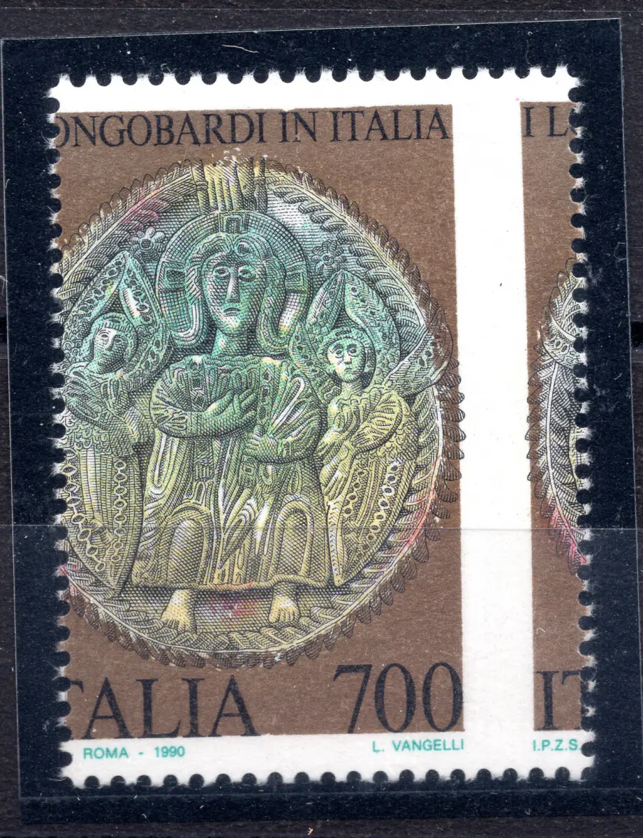 Vollgummi - Langobarden in Italien 700 Lire Nr. 1940b stark verschobene vertikale Verzahnung - Selten - Kat. 225 n. 659/L