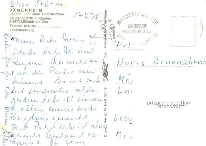 Laubendorf_Kaernten Jaegerheim Gaststube Millstaetter See Laubendorf Kaernten postalisch gelaufen 1975 Erhaltung siehe scans [WerneD78] WernPID7