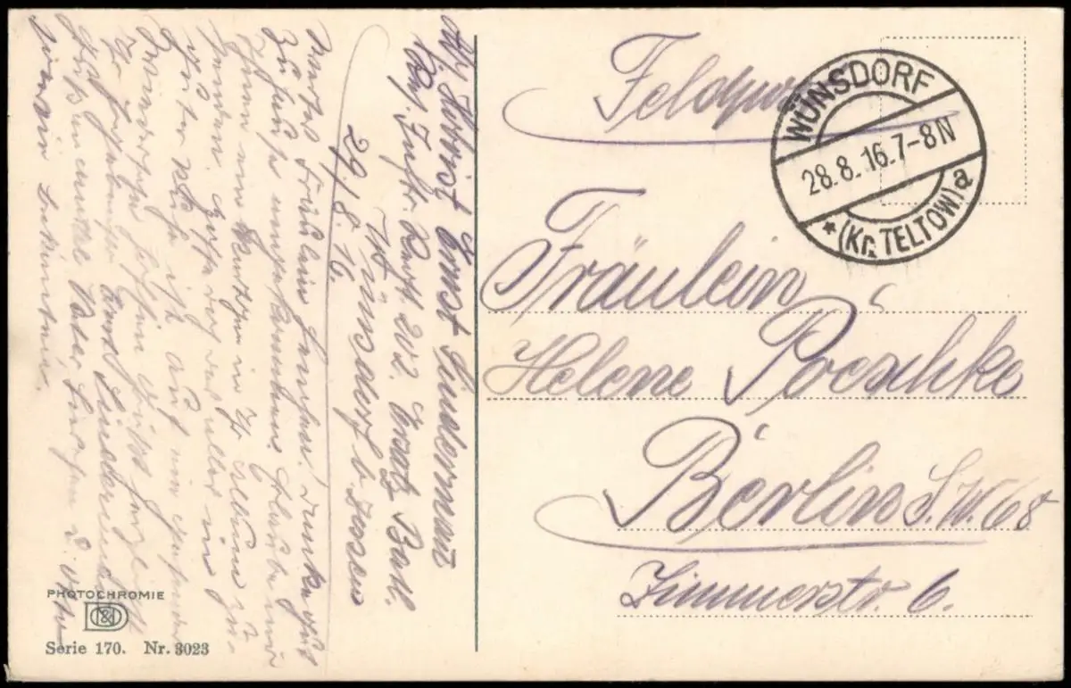 1. WK Feldpost gelaufen mit Stempel WUNSDORF Kr. TELTOW
