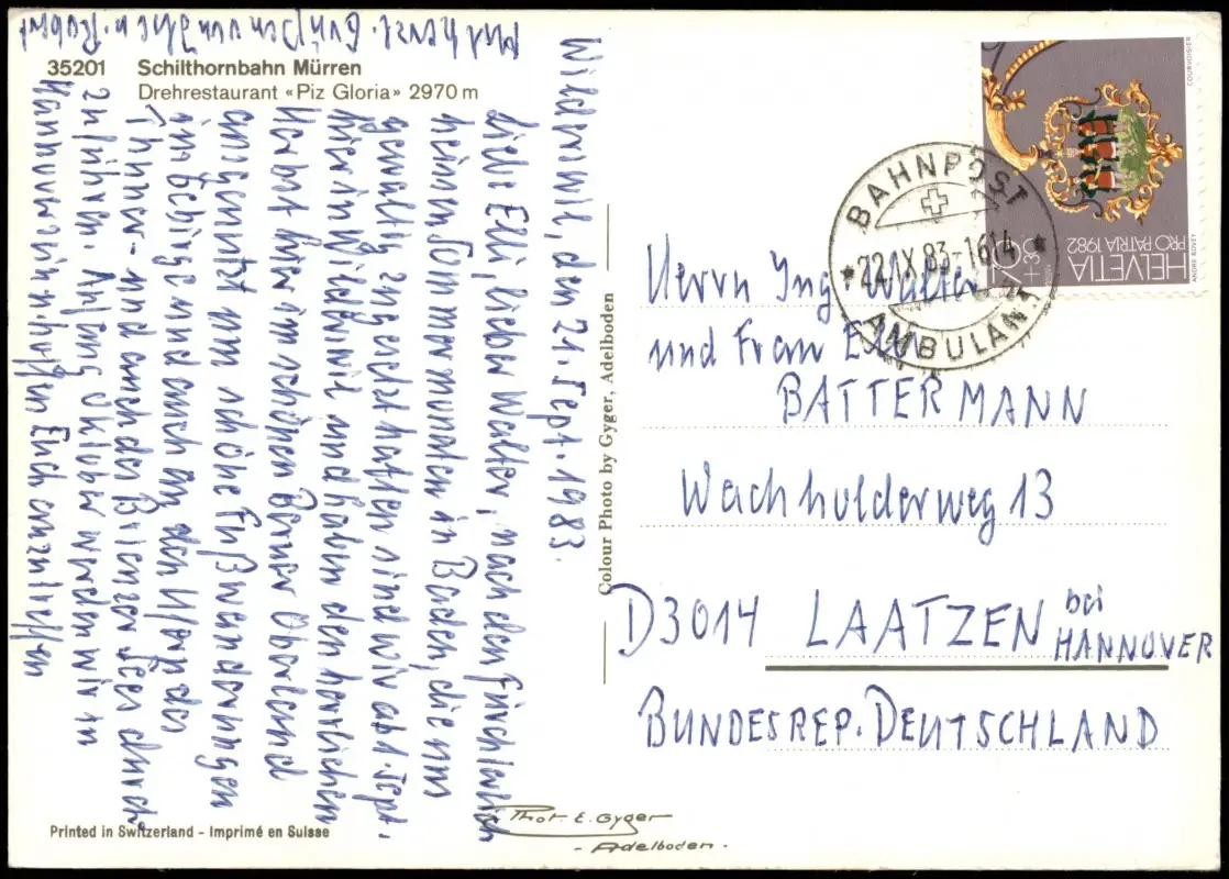 Lauterbrunnen Schilthornbahn Bergbahn Schweiz Mehrbild 1983 Bahnpost-Stempel