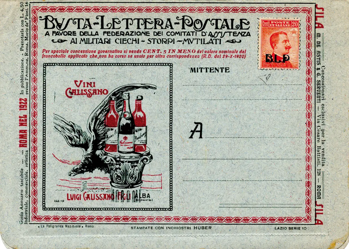 Lazio Serie 10 Weine Calissano - B.L.P frankiert mit Cent. 20 Nr. 2 nicht gereist, mit Innenfolie - Qualität: wunderschön - ED - Kat. euro 1.100 Cod.260/182