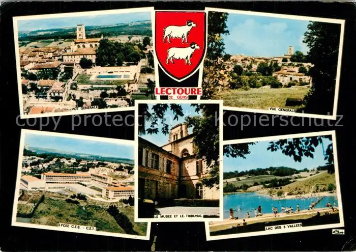 Lectoure Vue générale Lycee C.E.S. Musée Tribunal Lac des 3 Vallées Plage Lectoure postalisch gelaufen 1973 Erhaltung siehe scans [FriedD77] Frierer