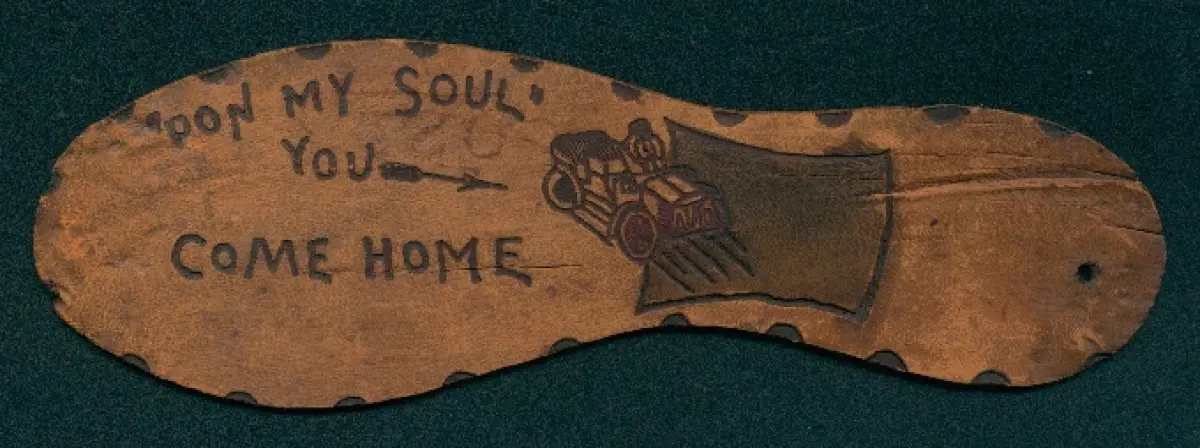 Leder-AK In Form einer Schuhsohle mit einem Autofahrer