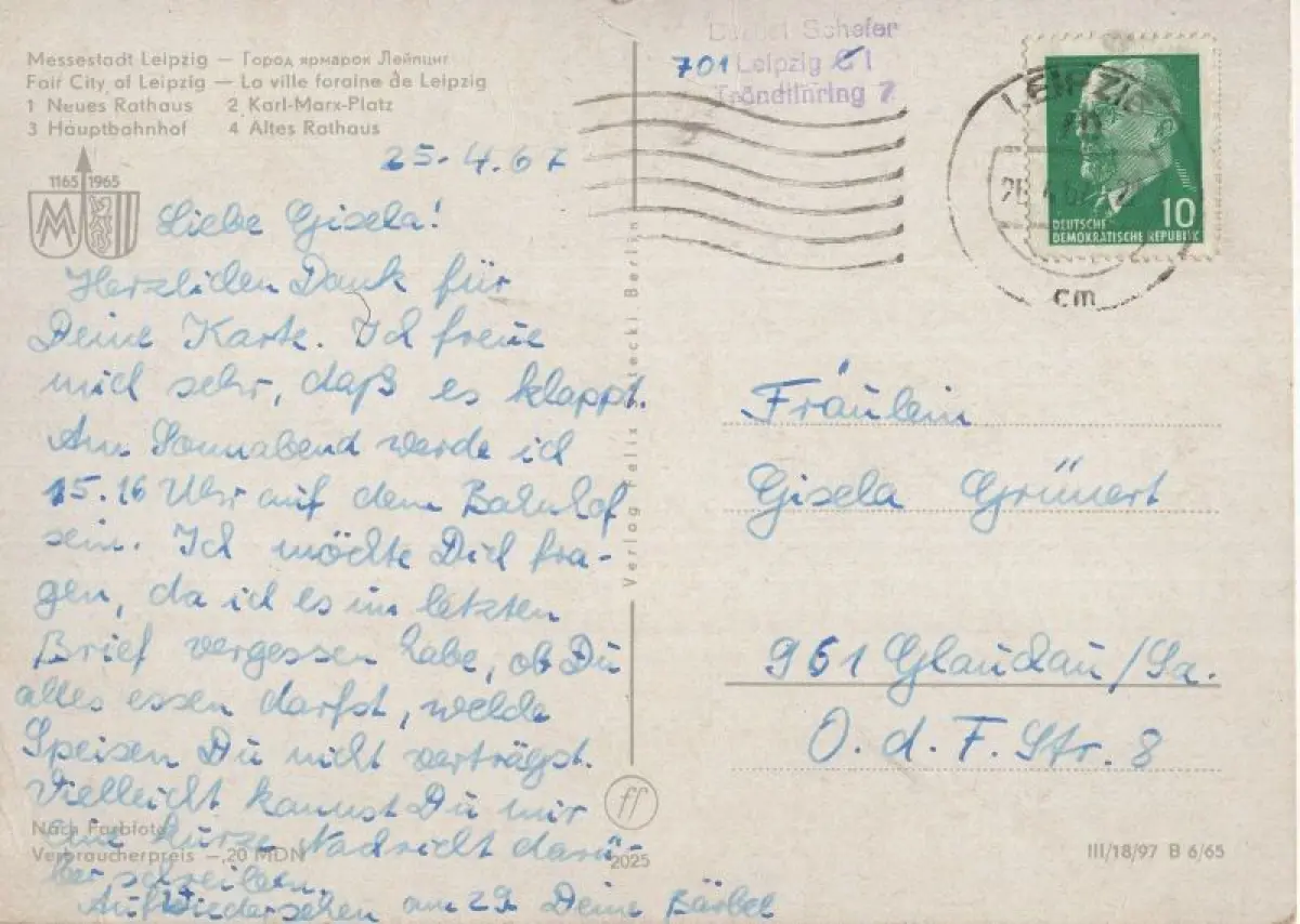 Postleitzahl:04103 (neu) / O 7000 (alt)