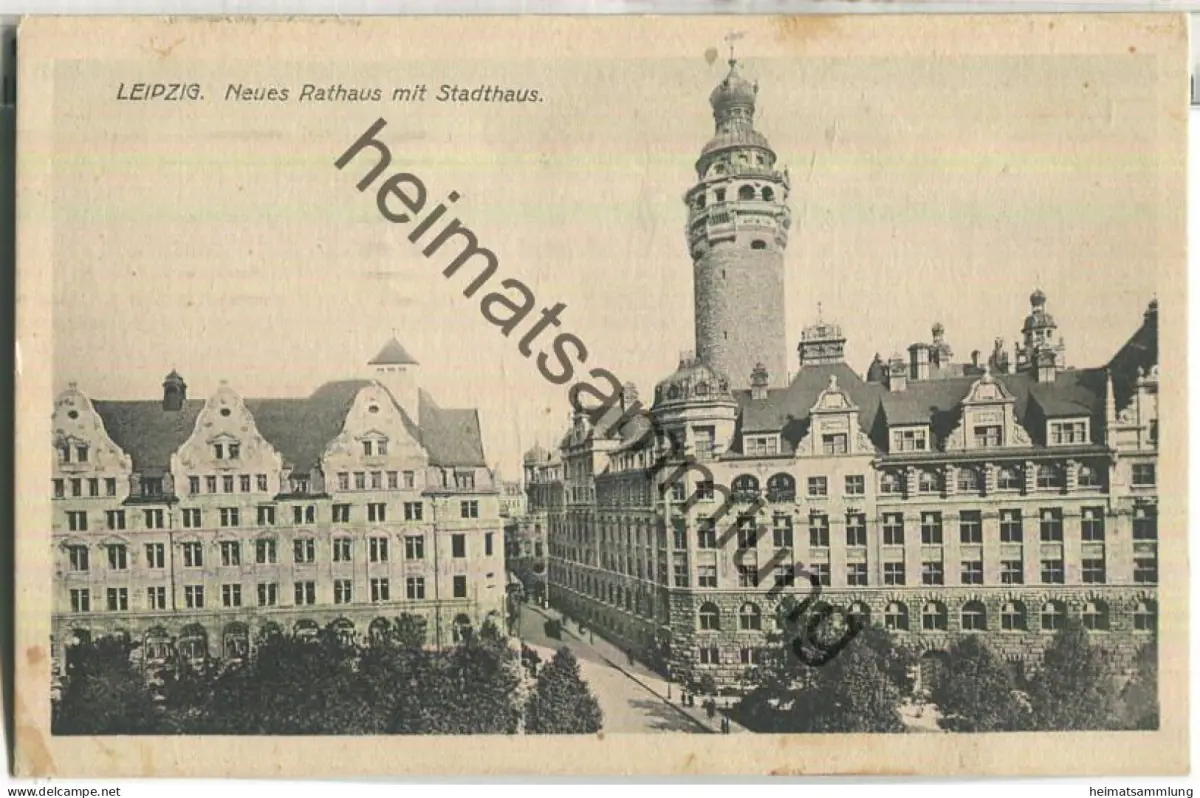 Leipzig - Neues Rathaus mit Stadthaus - Feldpost - leichte Gebrauchsspuren (E86233) gel. 1917