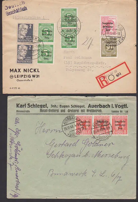 Leipzig W20 mit R-Zettel Leipzig W31, MiF mit SBZ-Aufdruck und Käthe Kollwitz, 8 Pfg. Bär Fernbrief 25.11.48