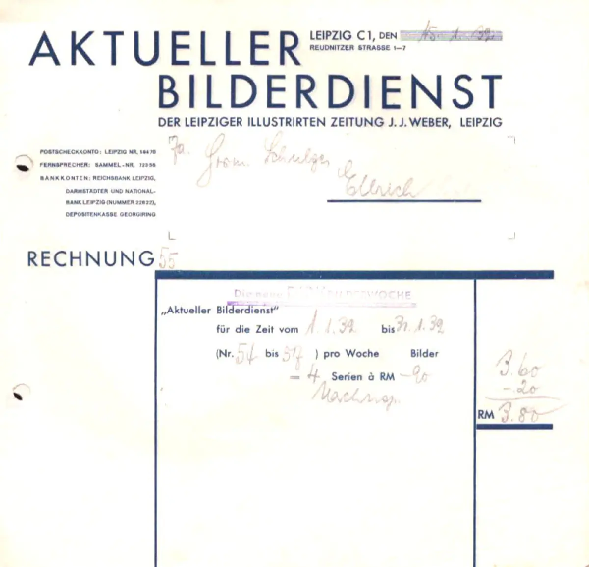 Leipziger Illustrierte Zeitung J. J. Weber Rechnung 1932