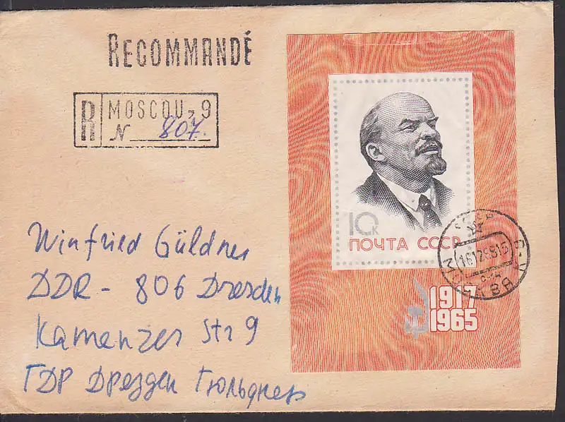 Lenin Block auf R-Brief aus Moskau Moscou 1917 - 1965