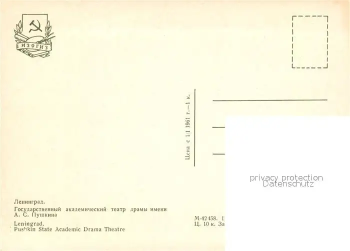 Leningrad_St_Petersburg Puschkin Theater Leningrad_St_Petersburg postalisch nicht gelaufen nach 1965 Erhaltung siehe scans [DarjaD84] DarjID84