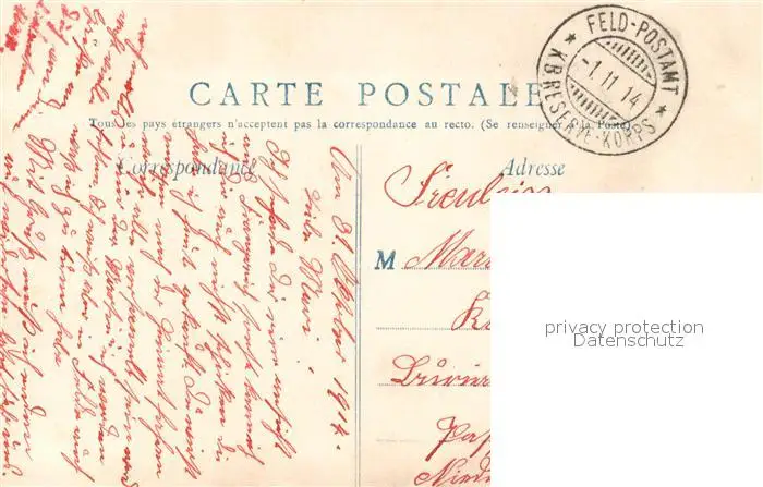 Lens_Pas-de-Calais Rue de Paris Lens_Pas-de-Calais postalisch gelaufen 1914 Feldpost - Stempel Erhaltung siehe scans [LiesaD40] Feldpost - Stempel LiesID40