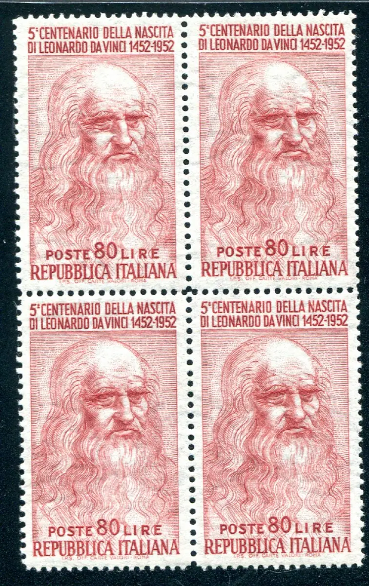 Leonardo Lire 80 Verzahnung 13,1/4 x 13 Pergamentpapier Vollgummi - Leonardo Lire 80 Nr. 688 wunderschönes Viertel a. von f. Verzahnung 13,1/4 x 13 Pergamentpapier (Sass. Spec. Nr. 190) - Selten - Zert. Carraro - Kat. euro 1.000+ Cod. 555/13