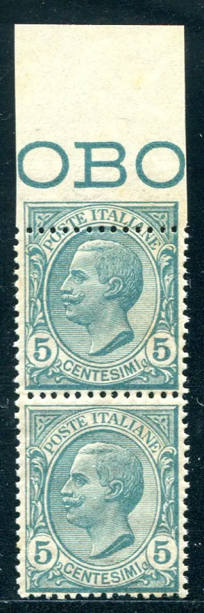 Leoni Cent. 5 Paar Sortenverzahnung unten Vollgummi - Löwen Cent. 5 n. 81ha senkrechtes Drehmoment davon ein Exemplar mit stark nach unten verschobener oberer Verzahnung b. von f. - Selten - Kat. euro 150 Cod. 95/13