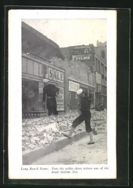 Leporello-AK Long Beach, CA, Diverse Ortsansichten nach Erdbeben