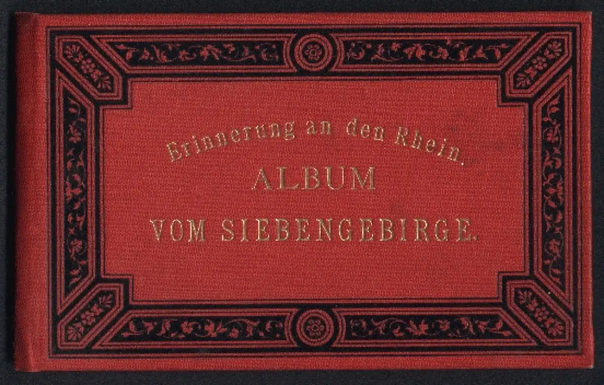 Leporello-Album 16 Lithographie-Ansichten Siebengebirge, Remagen, Deutsche Lokal- u. Strassenbahn, Drachenburg