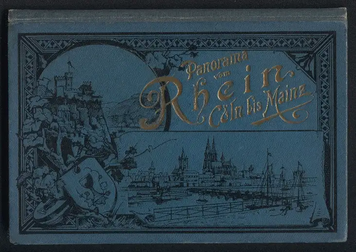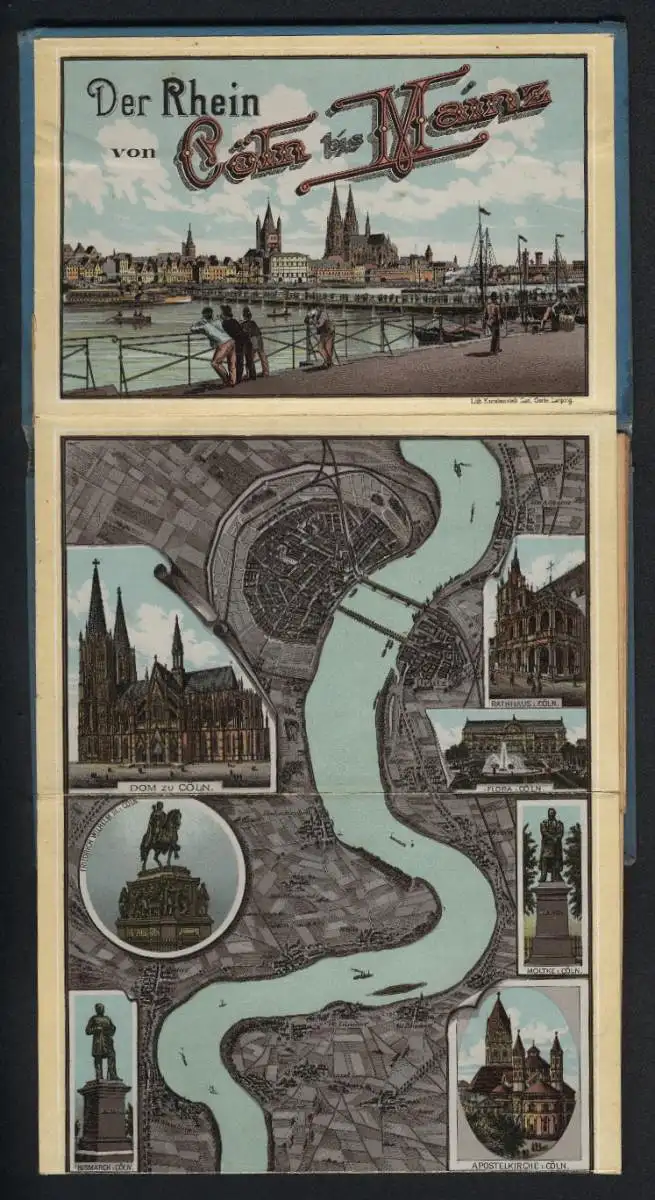 Leporello-Album 18 Lithographie-Ansichten Cöln-Maint Rhein-Panorama, Kölner Dom, Drachenburg, Sinzig, Panorama